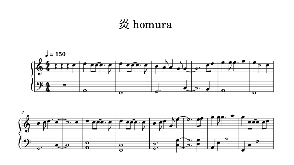 Here is the "LiSA - 炎 Homura" piano song pdf file